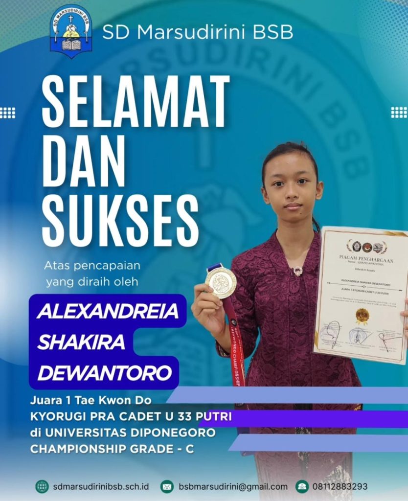 Selamat dan Sukses atas pencapaian yang diraih oleh Alexandreia Shakira Dewantoro